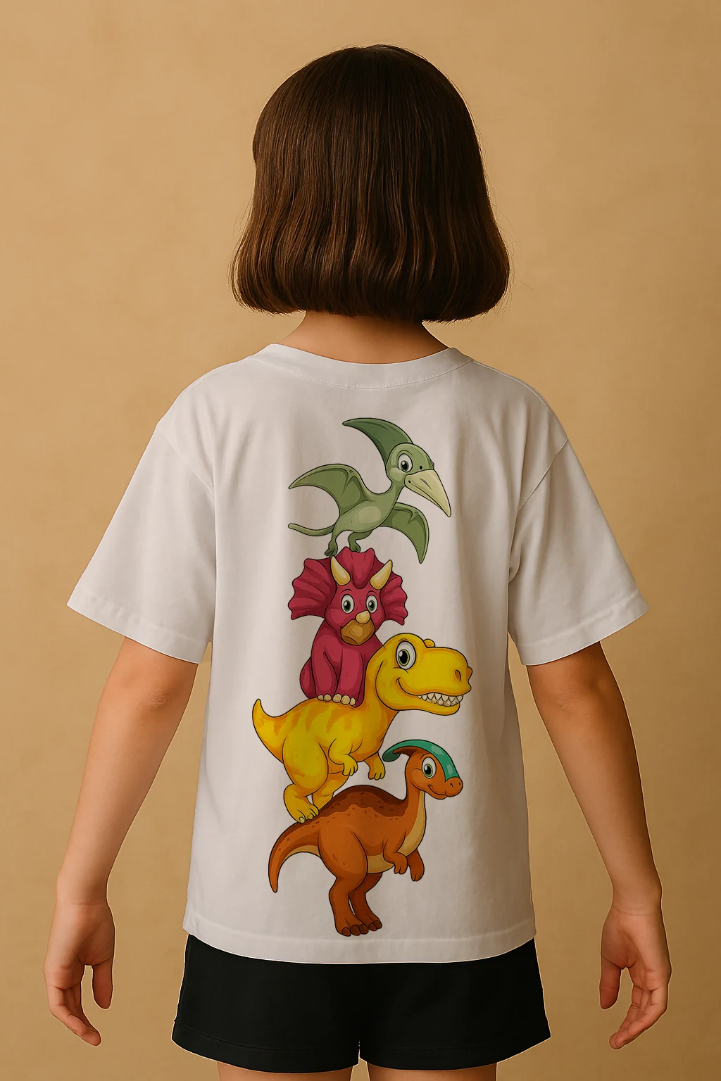Step back in time with the Cutesaur Squad Tee! Featuring playful cartoon dinosaurs — from a cheerful T-Rex to a friendly pterosaur — this tee brings Jurassic fun with a modern, adorable twist. The front design pops with the bold “CUTESAUR” graphic, while the back showcases a stack of cute dinos ready for adventure. Perfect for kids who love dinosaurs, fun colors, and comfy oversized fits, this T-shirt is all about mixing prehistory with playtime style.