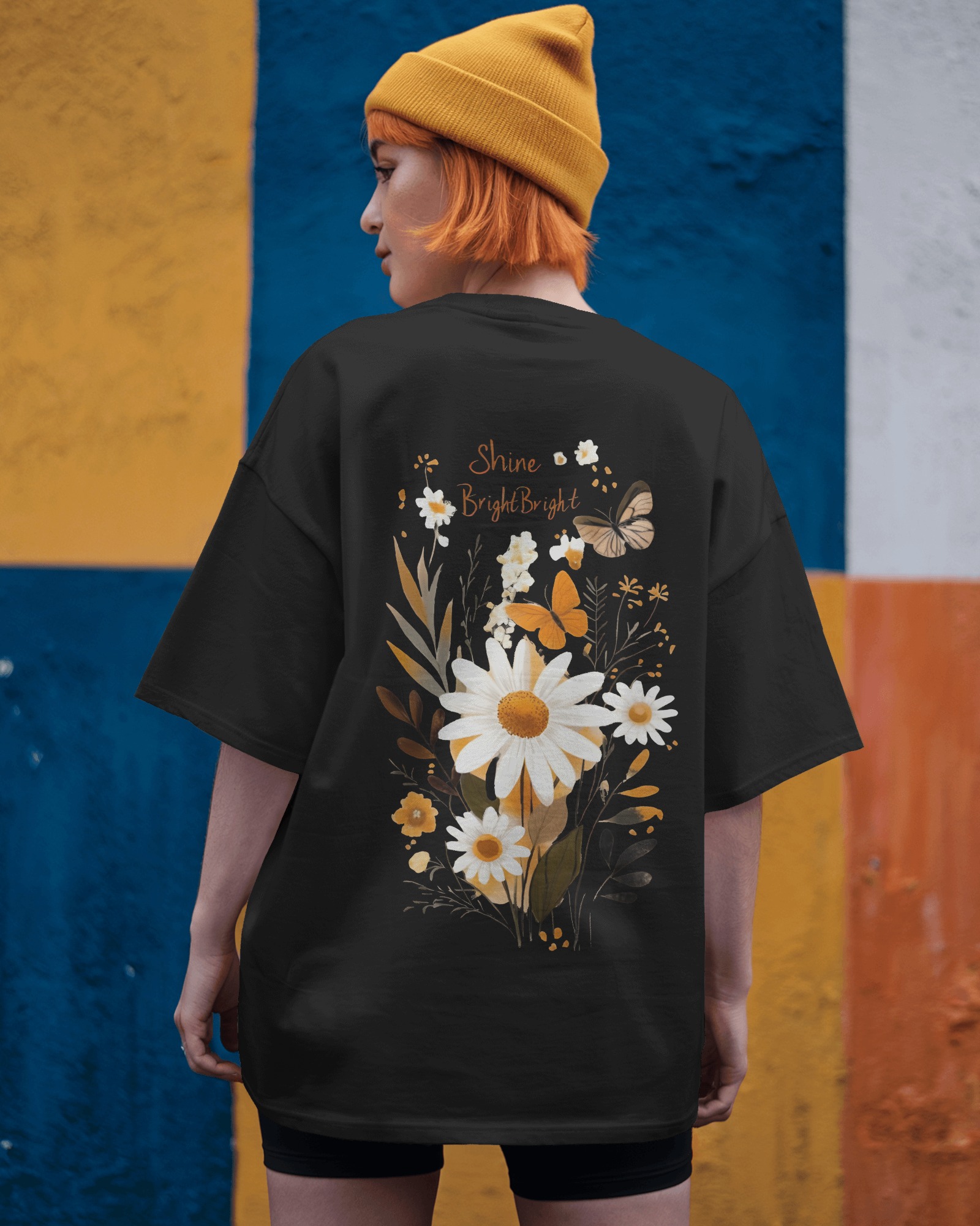 A tribute to growth, light, and quiet strength — Rise & Radiate brings together the soft charm of wild blooms and the warmth of golden butterflies into a single story. On one side, vases of hand-picked florals whisper gentle affirmations: Glow, Shine, Rise. On the other, bold daisies bloom freely with the uplifting message “Shine Bright Bright”, surrounded by fluttering butterflies and wild greenery.