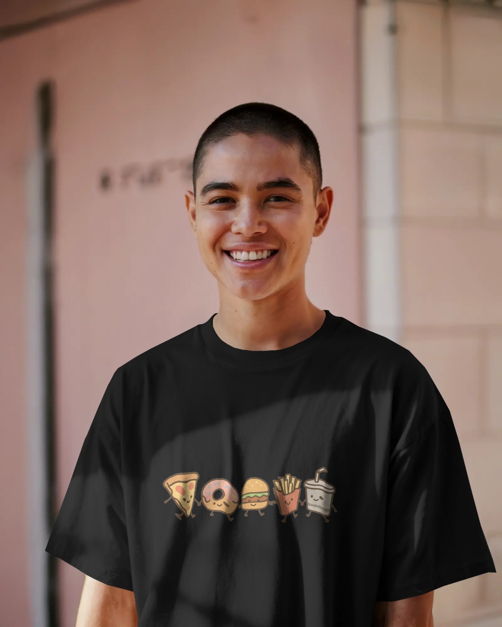 Celebrate your true soulmate—food—with this cheeky and adorable tee. The front features a lineup of your all-time favorite comfort foods (pizza, donut, burger, fries, and soda), each with cute cartoon faces, ready to steal your heart. The back boldly declares your status with “I’m in a relationship with food. Sorry.”—with playful typography and illustrated icons that pop with personality.