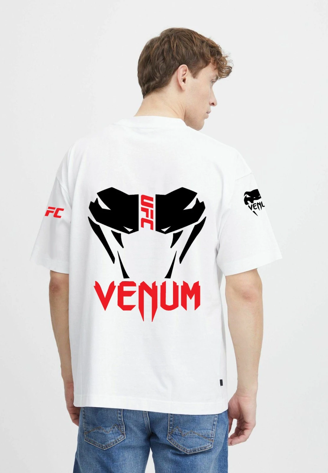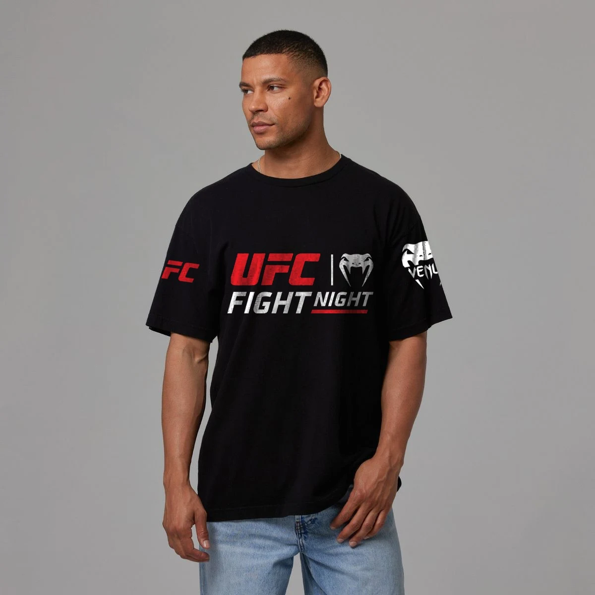 Step into the octagon style with the official UFC x Venum Fight Night tee. Designed in crisp white with bold red and black detailing, this shirt features the UFC Fight Night logo on the front and Venum’s signature snake graphic on the back. Made from premium cotton with a relaxed fit, it delivers both comfort and performance. Perfect for training, fight night, or casual wear, this tee lets you represent the ultimate combat sports partnership in style.