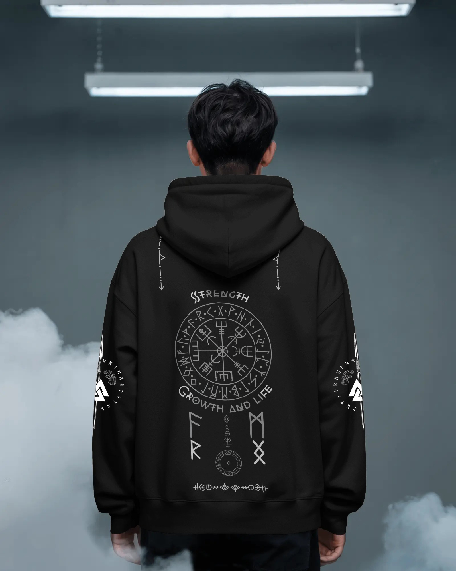 A bold Norse-inspired hoodie featuring ancient runes, symbolic markings, and a powerful Valhalla motif. Designed for those who embrace strength, courage, and warrior spirit in their streetwear style.