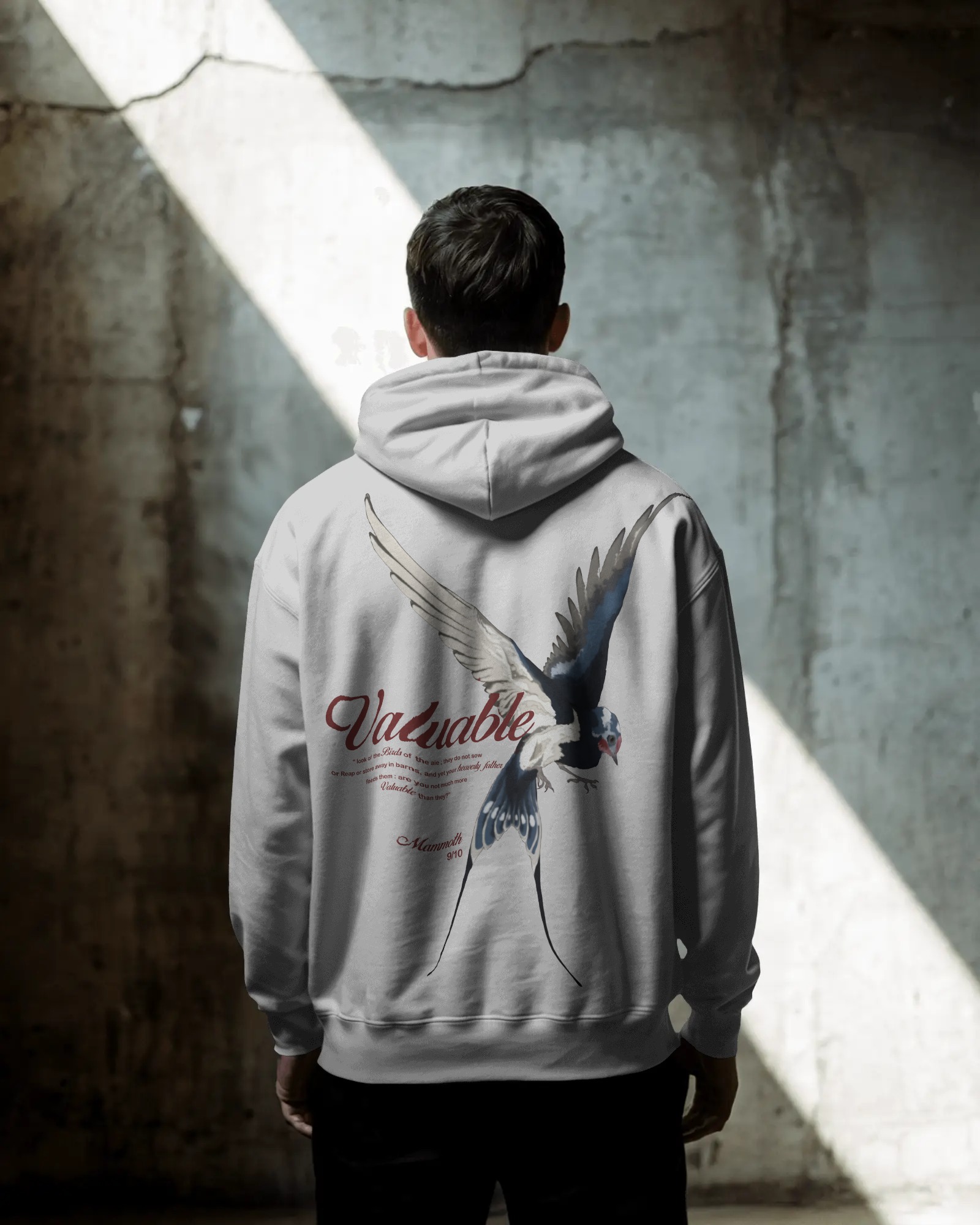 A soft, uplifting design featuring a graceful bird in flight and elegant typography, symbolizing freedom, worth, and inner strength. Perfect for those who love meaningful, aesthetic streetwear with a gentle artistic vibe.