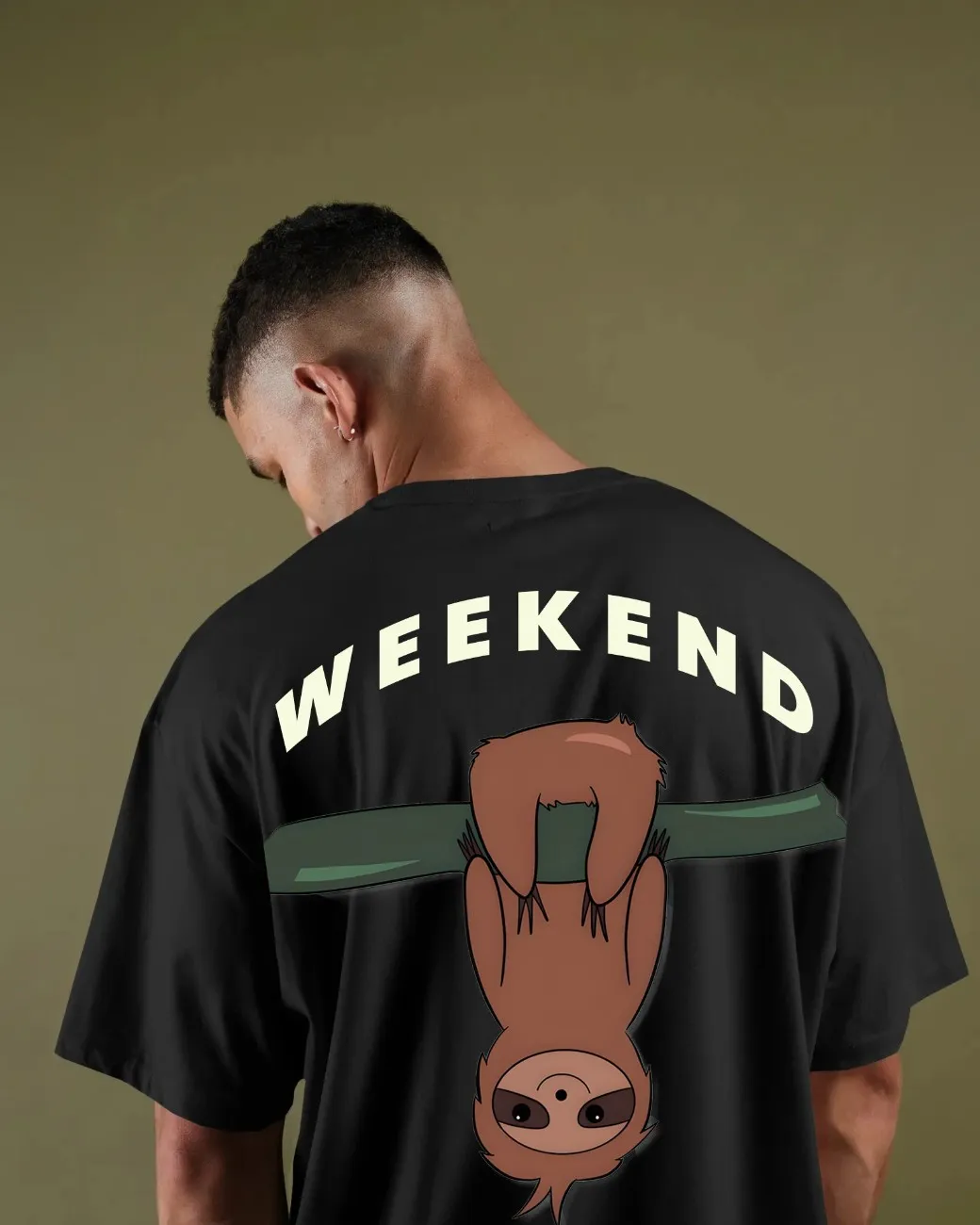 The Weekend Printed T-Shirt features a snoozing sloth and “WEEKEND MODE ACTIVATED” lettering for the perfect lazy-day vibe. Soft, comfortable, and effortlessly cute, it’s ideal for relaxing, unwinding, and embracing stress-free style.