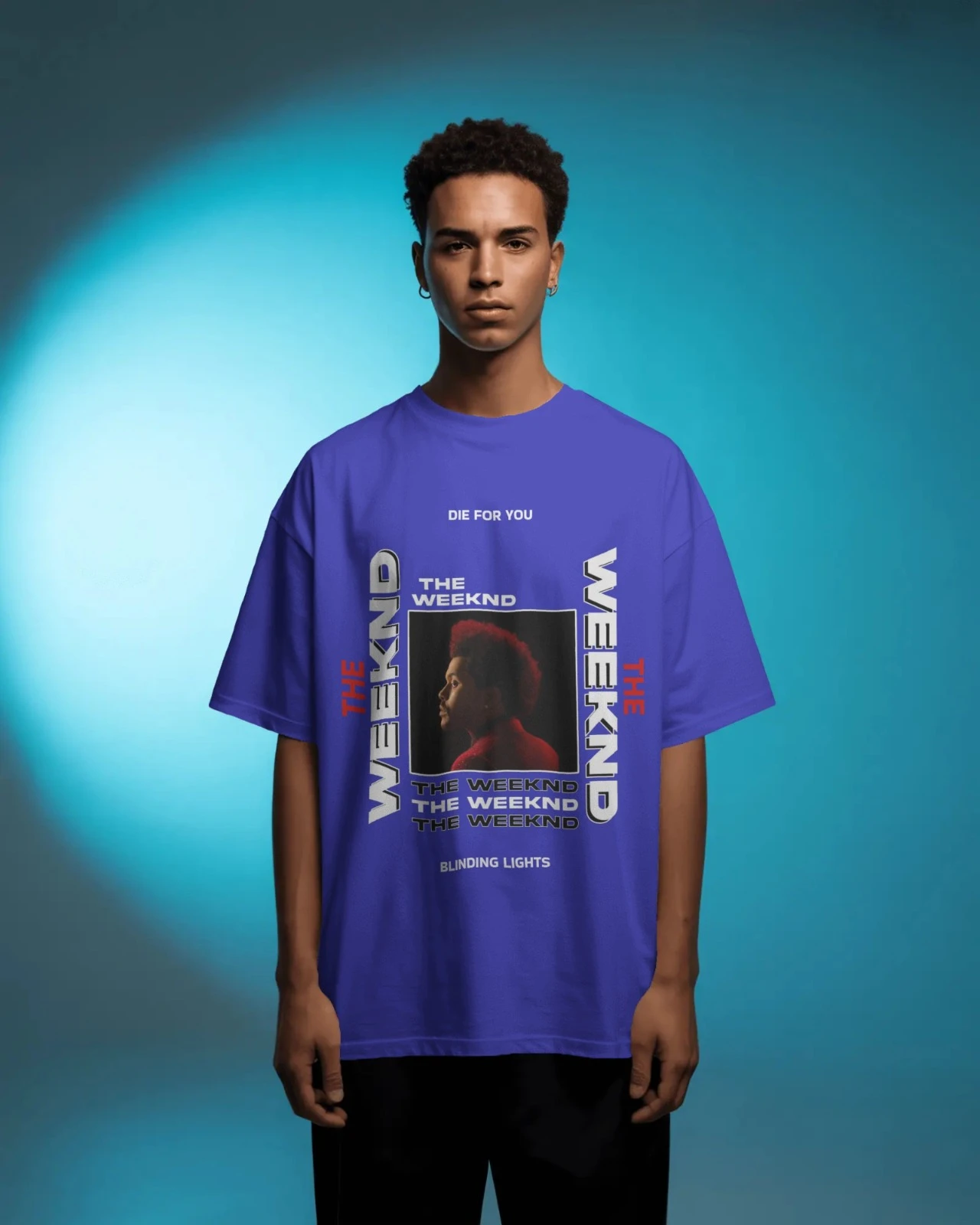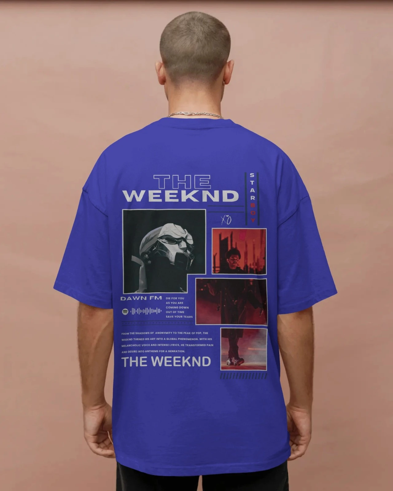 This oversized graphic tee celebrates The Weeknd’s legendary journey, merging iconic portraits with bold typography and album-inspired visuals. Featuring highlights from Starboy, Dawn FM, and chart-topping hits like Blinding Lights and Die For You, the design fuses futuristic aesthetics with raw emotion. A true collector’s piece for XO fans, it brings the concert vibe straight to your streetwear fit.